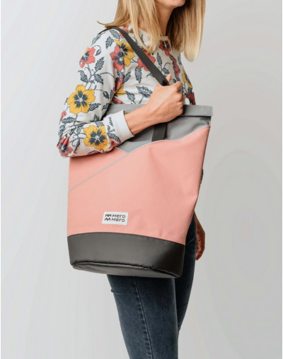 ✨ Le MeroMero Pow Shopper Bike Pink / Stone Grey est le cabas vélo ultime, alliant style, praticité et durabilité pour tous vos trajets urbains.