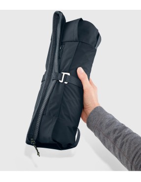 Son rabat supérieur pliable avec zip et fermoir métallique permet d’ajuster le volume du compartiment principal. La grande poche frontale zippée et les deux poches latérales offrent un accès rapide aux essentiels, tandis que les bretelles légèrement rembourrées, associées à une sangle poitrine et une ceinture ventrale amovibles, garantissent un port confortable et stable.