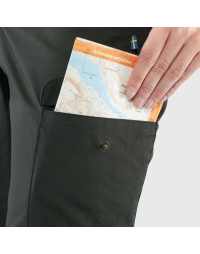 Le Kaipak Curved Trousers de Fjällräven est conçu pour s’adapter parfaitement à la morphologie féminine grâce à une coupe cintrée à la taille et des panneaux stretch stratégiquement placés (taille, entrejambe et arrière des genoux). Polyvalent, il se porte aussi bien en randonnée qu’en usage quotidien.