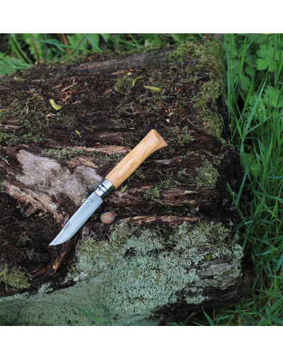 Le Couteau Opinel N°08 en Olivier incarne le mariage réussi entre nature, fonctionnalité et élégance.