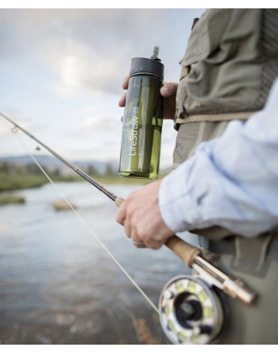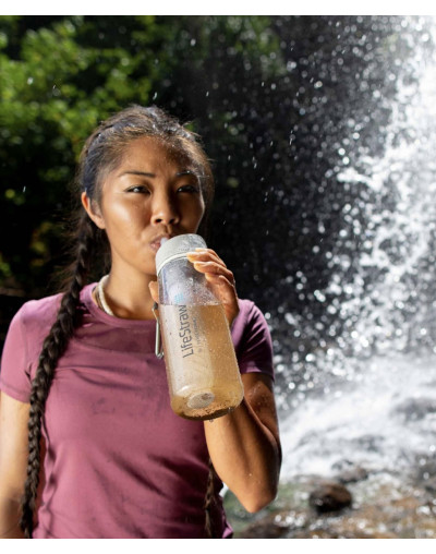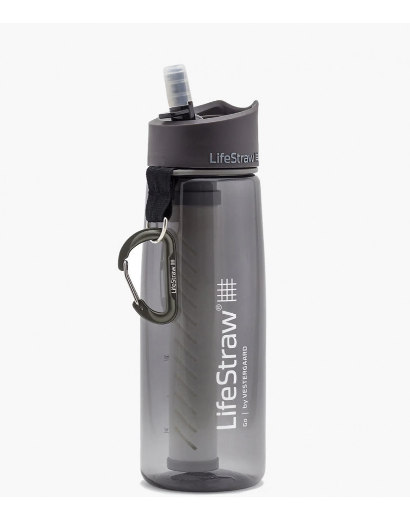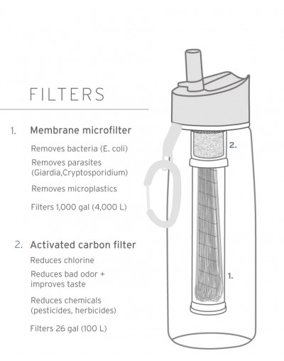 Comprend : bouteille d'eau, filtre à eau, bouchon avec embout en silicone, mousqueton