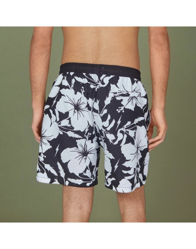 Short de bord imprimé botanique allover avec taille élastique, cordon de serrage et filet intérieur. Deux poches latérales, une à l'arrière et une poche intérieure. Logo brodé sur la jambe gauche. 16/40 cm de long.100% PES