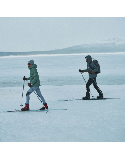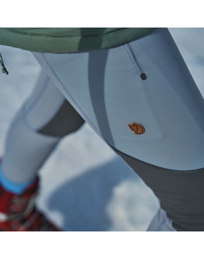 Le legging Abisko Värm pour femme est le compagnon idéal de vos randonnées automnales et hivernales. Conçu dans un tissu extensible robuste en polyester recyclé et élasthanne, il combine isolation thermique, protection coupe-vent et liberté de mouvement.