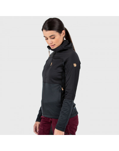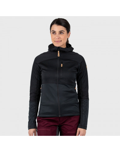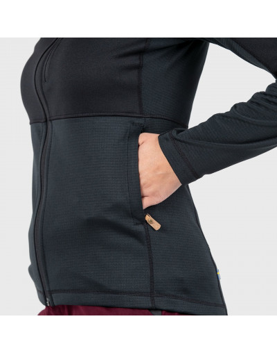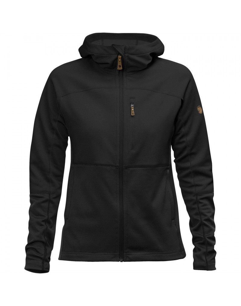 Sweat polaire à capuche léger et pratique. La juxtaposition de deux matériaux polaires procure la chaleur là où il faut tout en maintenant un poids et un volume minimum. La capuche, les épaules et la poitrine sont en polaire polyester en tricot plat (partiellement recyclé) avec un envers brossé soyeux. Les côtés ainsi que le bas du torse et des manches sont en polaire à structure quadrillée assurant une aération supérieure. Il sèche rapidement et évacue l'humidité, parfait pour une petite excursion ou la fraîcheur des soirées d'été. Coupe ajustée féminine et capuche douillette avec ouverture pour queue de cheval. Fermeture à glissière sur le devant. Poche-poitrine et deux poches pour les mains, toutes avec fermeture à glissière.