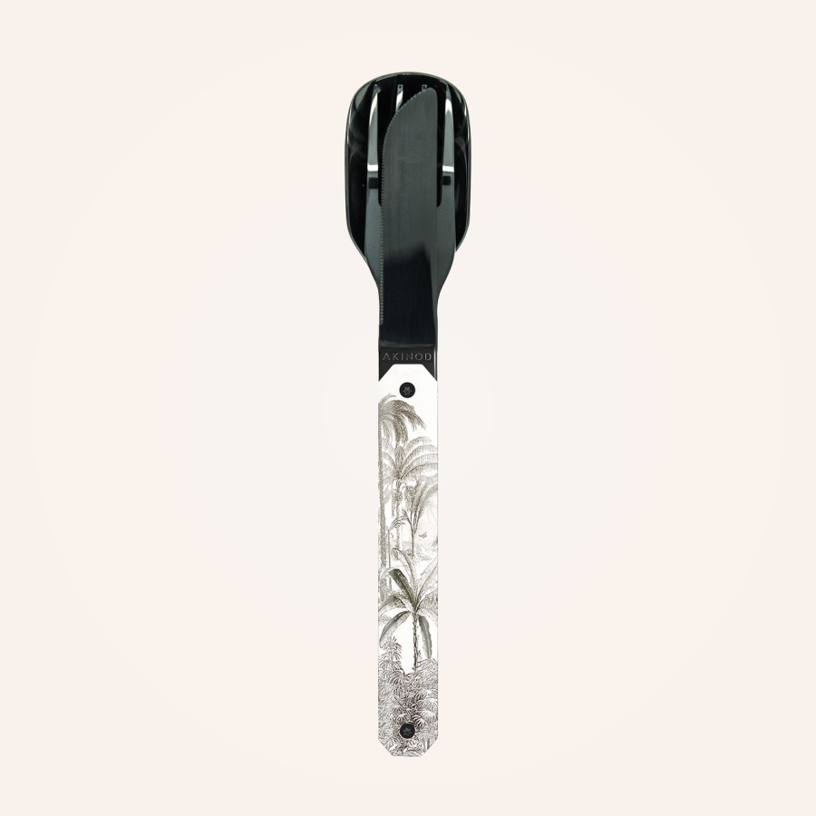 Les Couverts Akinod Droits 12h34 Tropique Noir allient élégance, innovation et praticité pour accompagner tous vos repas, où que vous soyez.