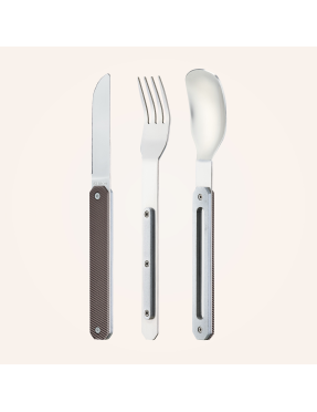 Leur allure sobre et technique, inspirée des matières métalliques et des accessoires outdoor, en fait un set élégant, robuste et parfaitement adapté aux repas nomades : bureau, voyage, pique-nique ou pause déjeuner au quotidien.