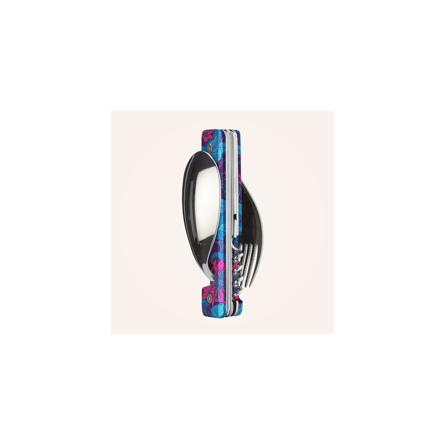 Les Couverts Akinod Multifonctions 13h25 Hibiscus apportent une touche florale et exotique à vos repas nomades.