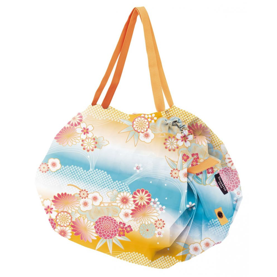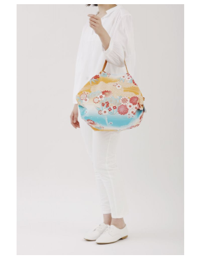Ce sac pliable japonais arbore un motif délicat inspiré des nuages flottants (“Nagare Gumo”), symbole de calme et de légèreté dans la culture japonaise.