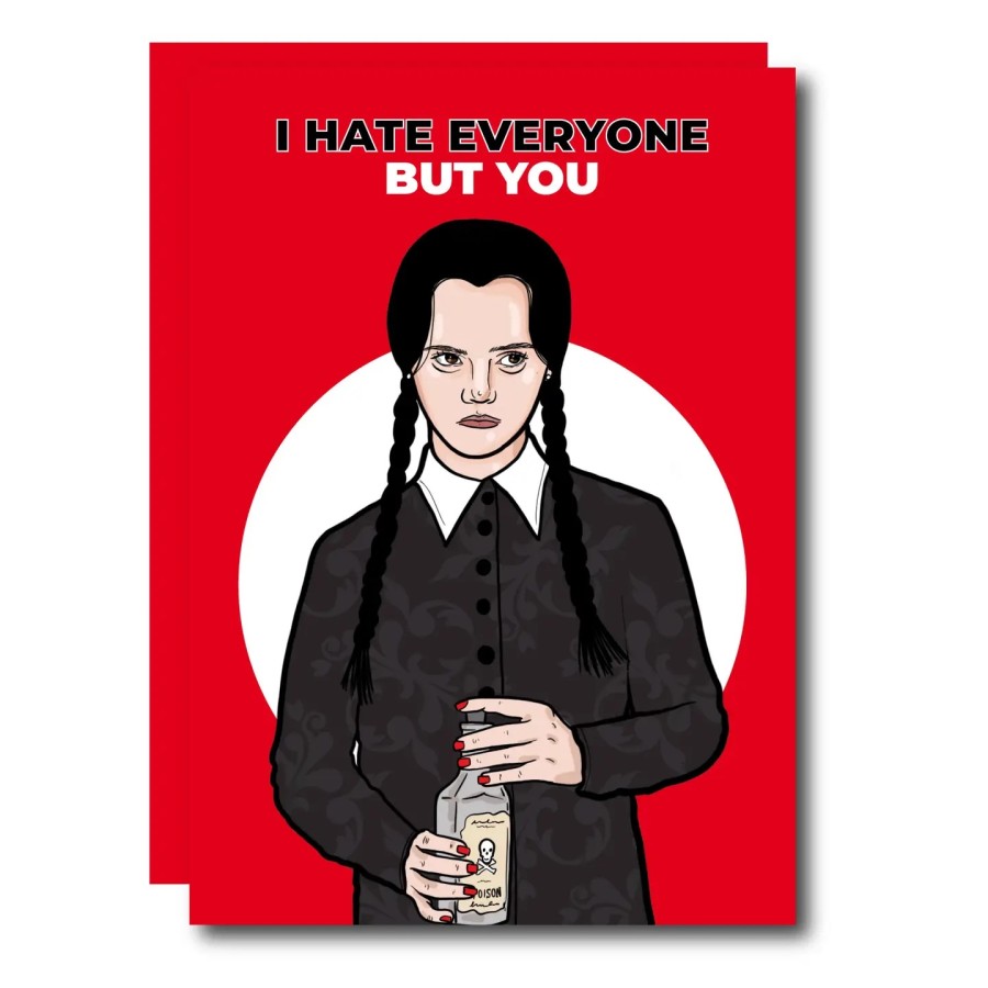 La carte de vœux “I Hate Everyone But You” (Wednesday Addams) est le mélange parfait entre sarcasme, élégance et écologie.