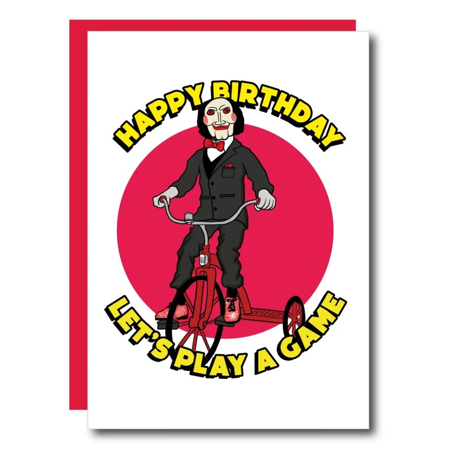 Souhaitez un Happy Halloween à faire frémir avec cette carte de vœux “Saw Doll”, inspirée de l’emblématique pantin Billy, messager du tueur Jigsaw.