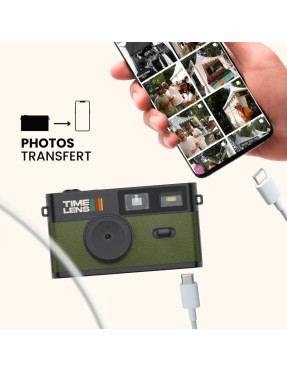 Le TimeLens® Kaki reprend l’esprit des appareils photo “à l’ancienne” (simple, spontané, sans distraction) dans une version numérique réutilisable, au look kaki sobre et tendance. Vous shootez sur le moment, et vous découvrez vos photos plus tard en les transférant sur votre téléphone.