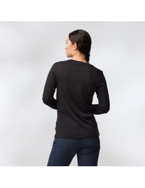 Haut à manches longues léger en jersey doux de laine mérinos et polyester. Il associe les propriétés de régulation de température des fibres de laine à la durabilité et aux propriétés d’évacuation de l’humidité des matières synthétiques. Cette première couche est parfaite par temps chaud ou froid et très utile pour les voyages de plusieurs jours car la laine résiste naturellement aux mauvaises odeurs.