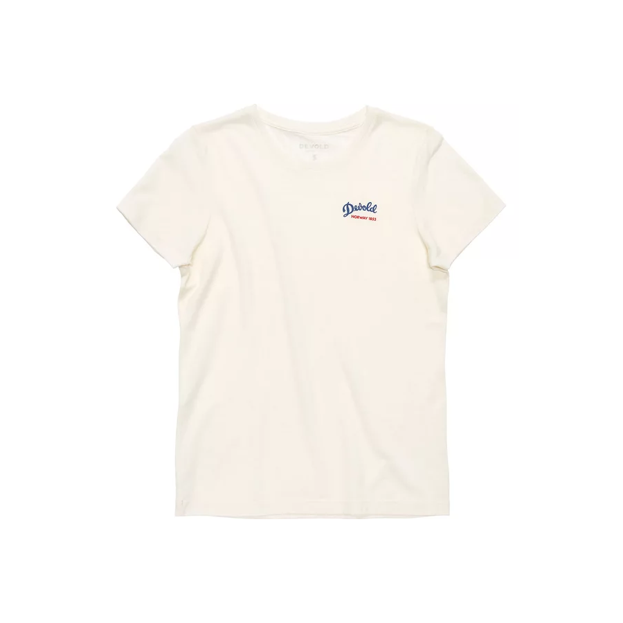 Alliez confort premium et style minimaliste avec le t-shirt femme Devold en laine mérinos “Classic Script” – White.