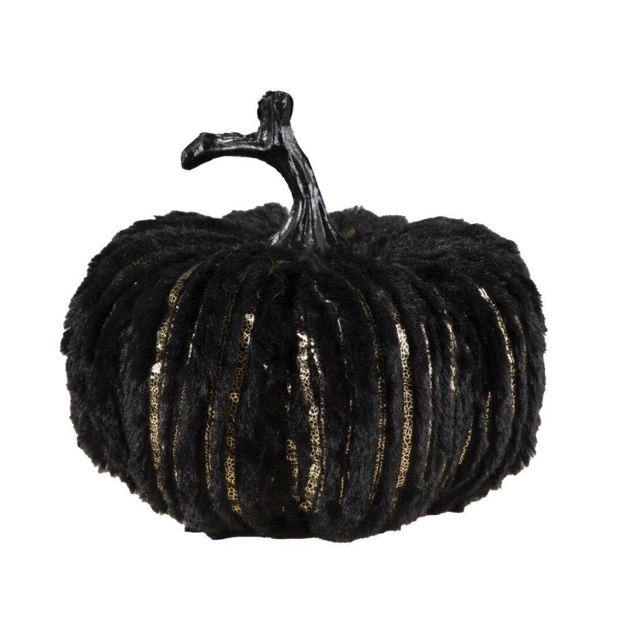 Apportez une touche d’élégance à votre décoration d’Halloween avec cette citrouille en velours noir et doré. Chic et raffinée, elle associe l’ambiance mystérieuse de la fête des sorciers à un style glamour unique. Fabriquée en polystyrène léger et habillée de velours doux, elle est parfaite pour décorer une table, une étagère ou un rebord de fenêtre, seule ou en composition avec d’autres décorations automnales.