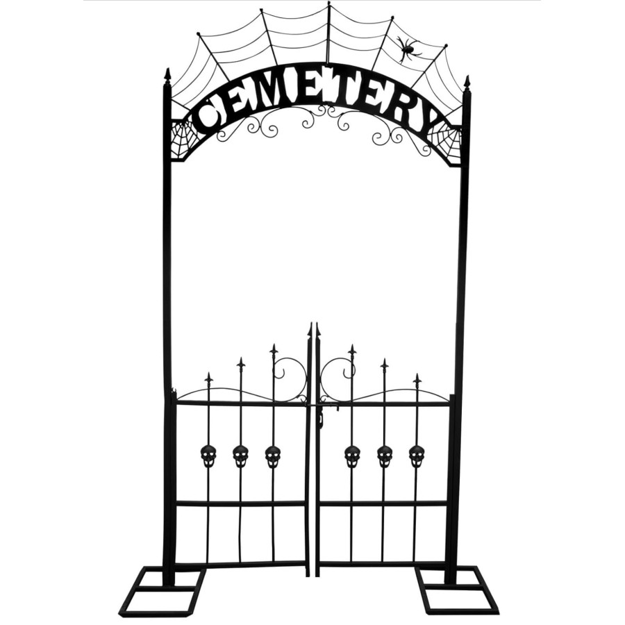 Cette structure en métal, ornée du texte “CEMETERY” en lettres gothiques, est parfaite pour accueillir vos invités lors d’une soirée d’Halloween, d’un événement thématique ou d’une décoration immersive de fête.