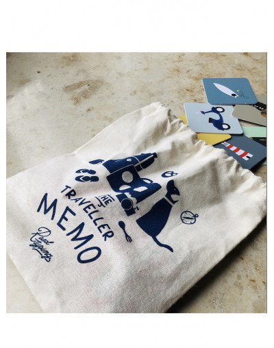 Jeu de mémo illustré 35 paires de cartes (70 cartes au total) dans un sac en tissu imprimé