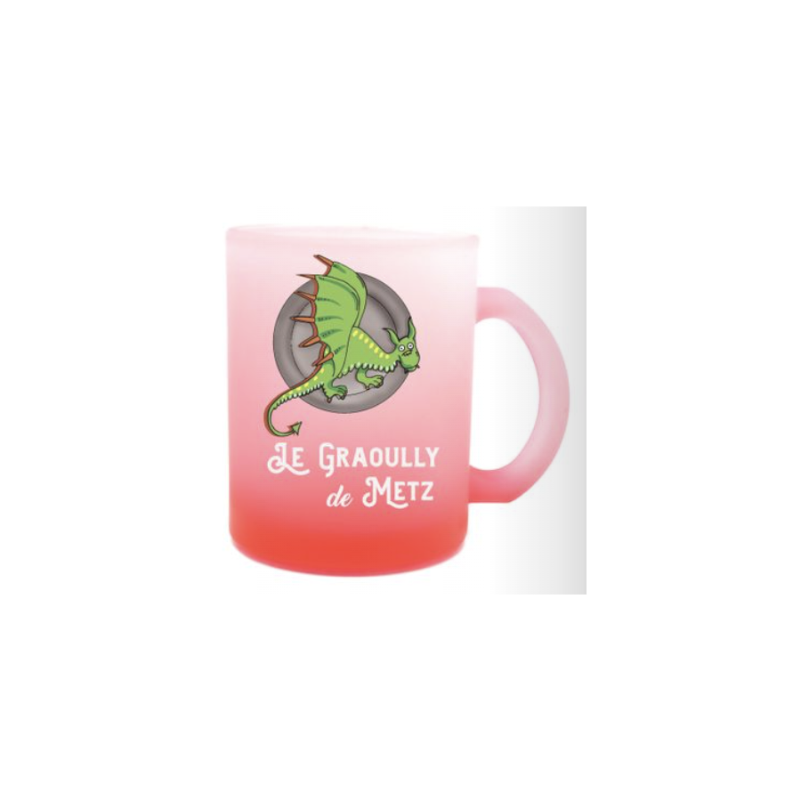 Le mug givré rouge Graoully Metz se distingue par sa finition givrée élégante et son coloris rouge intense, qui met parfaitement en valeur le Graoully, créature légendaire et symbole emblématique de la ville de Metz. Agréable en main et visuellement original, il est idéal pour savourer café, thé ou chocolat chaud, à la maison comme au bureau.