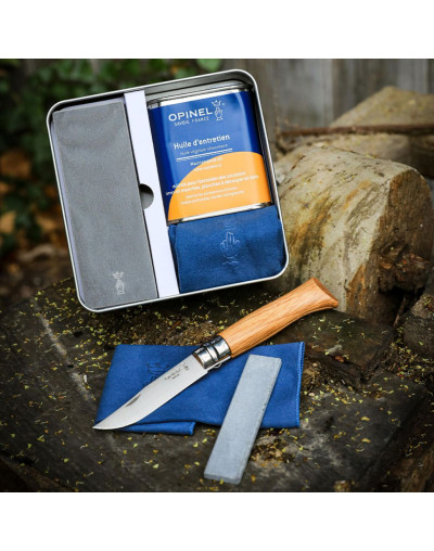 Prenez soin de vos couteaux avec le Kit d’entretien OPINEL, pensé pour prolonger leur durée de vie et préserver leur tranchant. Compact et pratique, il regroupe tout le nécessaire pour nettoyer, nourrir et affûter vos lames dans une élégante boîte métallique de rangement.