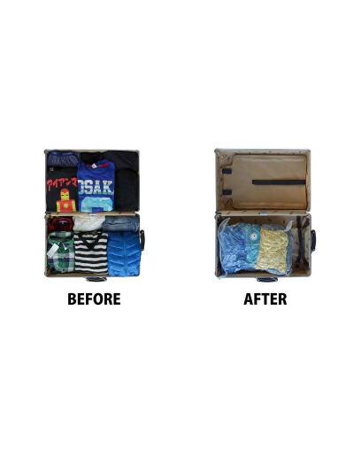Glissez vos vêtements à l'intérieur du sac fourni, branchez le compresseur de voyage Vago et le tour est joué!