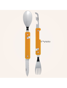 Apportez de l’énergie et du style à vos repas nomades avec les Couverts Akinod Multifonctions 13h25 – Aluminium Orange.