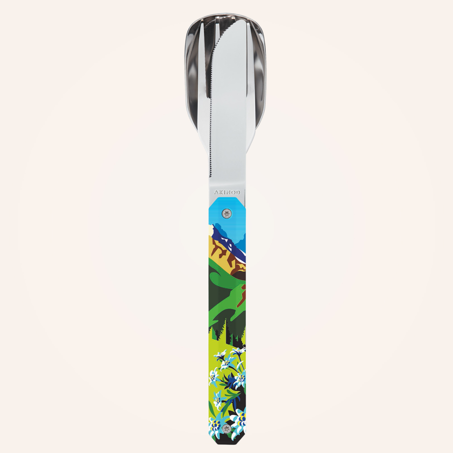 Les Couverts Akinod Droits 12h34 Montagne Été célèbrent l’esprit des grands espaces : un design inspiré des paysages alpins estivaux, entre fraîcheur, nature et liberté.