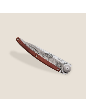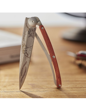 Le Deejo 37g Titane / Bois Corail – “Cocorico” est un couteau de poche léger, raffiné et affirmé, pensé pour ceux qui apprécient le design autant que la fonctionnalité.