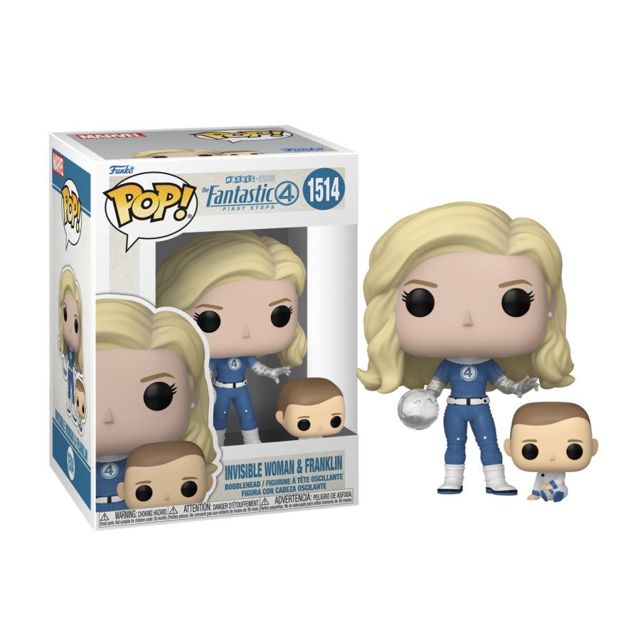 La Funko POP! Marvel N°1514 – La Femme Invisible & Franklin illustre à merveille la dualité de Susan Storm : protectrice et redoutable à la fois.