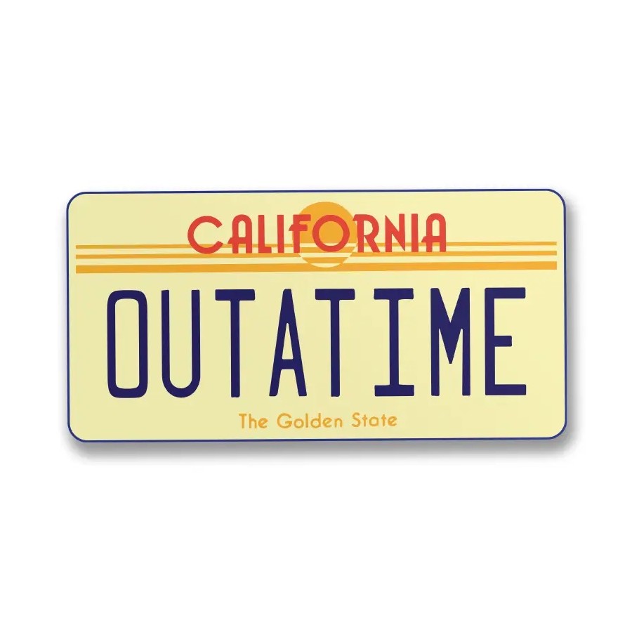 Ajoutez une touche culte et rétro à votre déco avec l’autocollant “Out of Time” – Plaque d’immatriculation inspiré de Retour vers le Futur, signé Hybris.