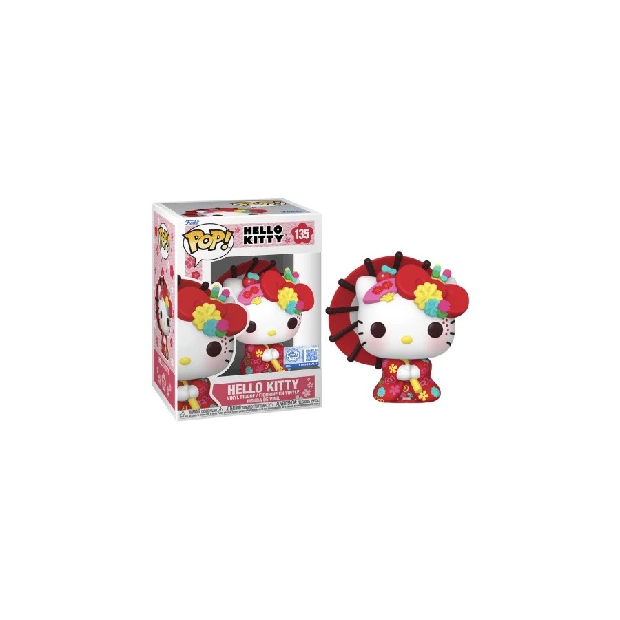 La Funko POP! Sanrio N°135 – Hello Kitty en Kimono met en scène Hello Kitty vêtue d’un magnifique kimono, dans une version stylisée fidèle à l’esthétique emblématique de Funko.