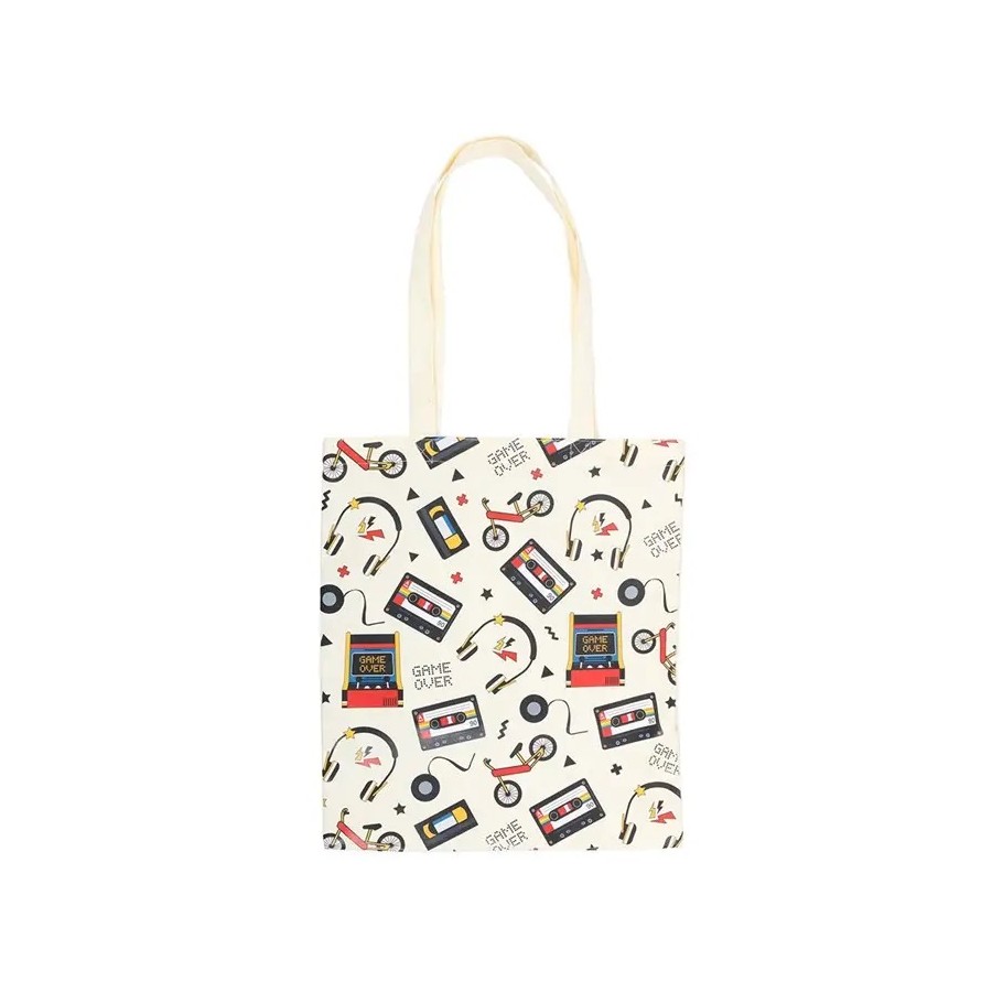 🛍️🕹️ Sac fourre-tout en polycoton à imprimé arcade rétro des années 80 – Something Different Wholesale