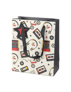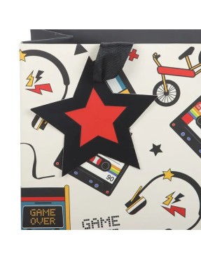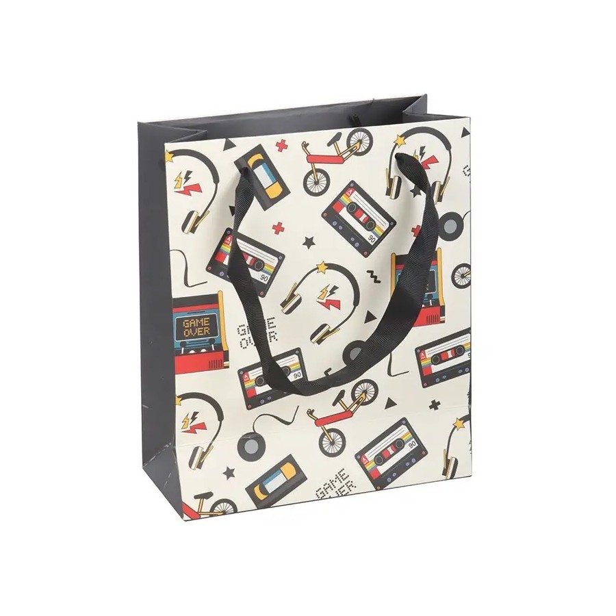 Sac cadeau moyen rétro des années 80 avec imprimé arcade de 23 cm