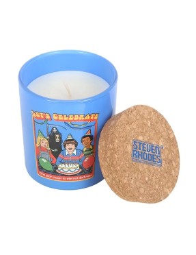 La bougie “Un An de Plus Proche” revisite l’univers des bougies gourmandes avec un visuel rétro typique de l’artiste Steven Rhodes, connu pour ses illustrations à l’humour sombre inspirées des manuels éducatifs vintage.