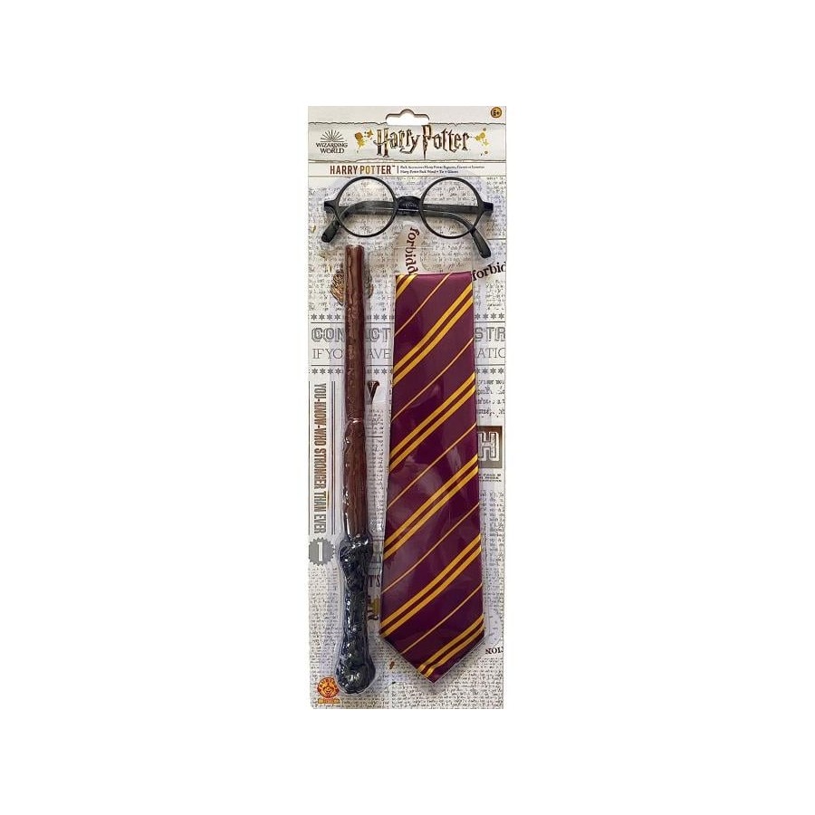 Ce set d’accessoires Harry Potter rassemble trois éléments incontournables inspirés de l’univers du plus célèbre élève de Poudlard : les lunettes rondes iconiques, la baguette magique et la cravate reconnaissable entre toutes. Parfait pour compléter un déguisement ou enrichir une collection dédiée à la saga.