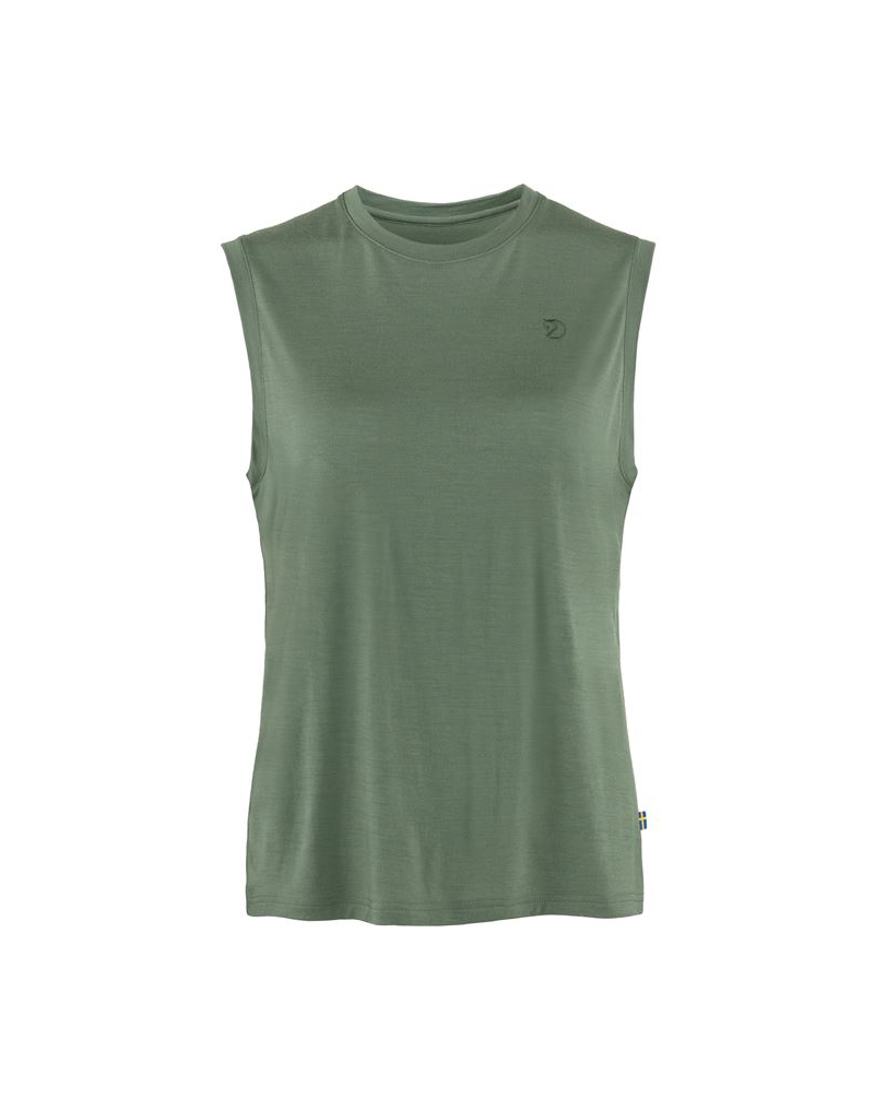 Le Fjällräven Abisko Wool Tank Top – Patina Green est bien plus qu'un simple débardeur : c’est une seconde peau naturelle, pensée pour les exploratrices modernes.