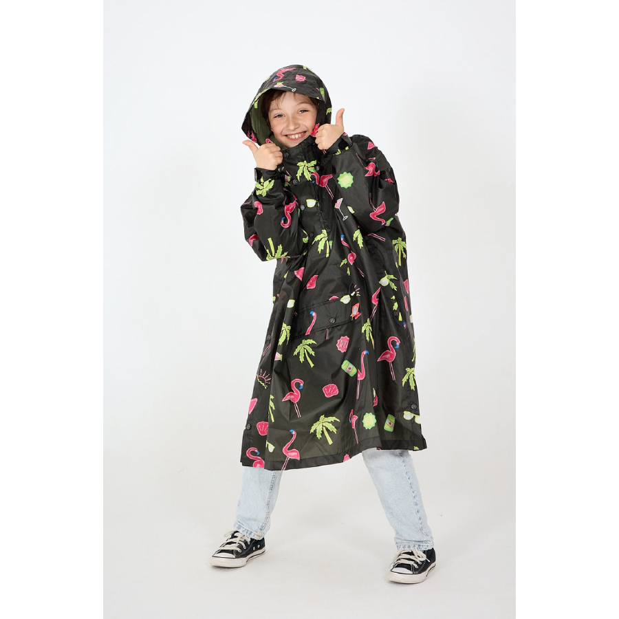 Qui a dit que l’on ne pouvait pas s’amuser sous la pluie ? Avec le poncho Paradise, même les journées pluvieuses peuvent prendre un air de vacances. Ses flamants roses et ses cocotiers les transporteront directement vers une destination ensoleillée !